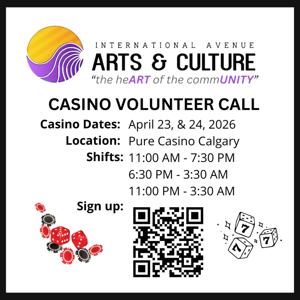 Happening April 23 & 24 at Pure Casino Calgary. It is through this major fundraiser IAACC is able to support arts & cultural programming in Greater Forest Lawn.